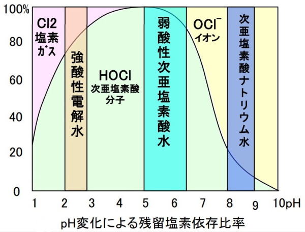 | 主たる除菌成分 | 次亜塩素酸(HOCL) | 塩素ガス(CL2) | 次亜塩素酸イオン(OCL⁻) |